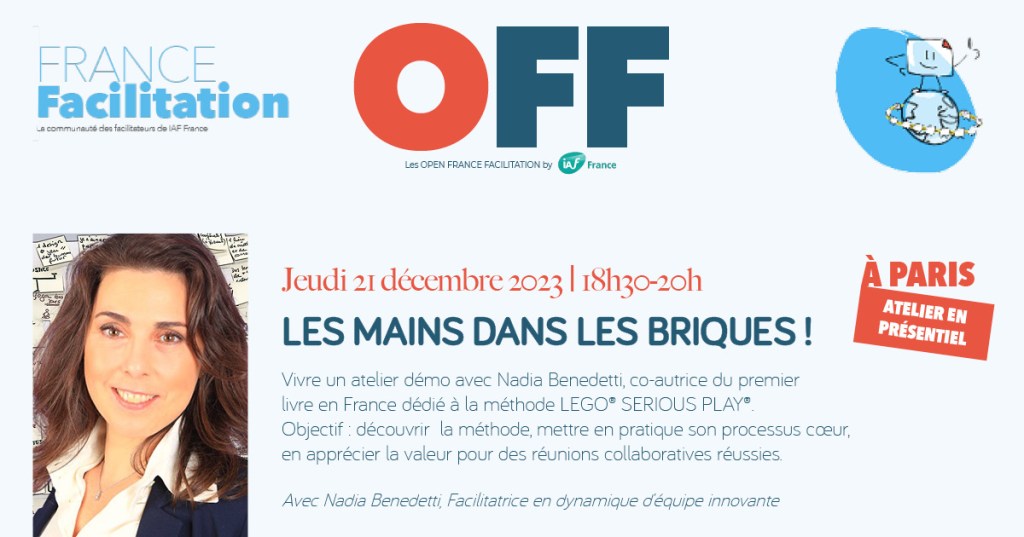👉 Possibilité de réserver un ouvrage « La Méthode Lego® Serious Play® » (éd. Dunod), dédicacé par l’autrice, au prix de 20€ (au lieu de 22€). Réservation lors de votre inscription et paiement sur place.