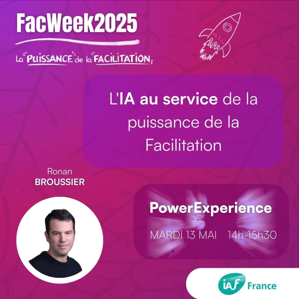 Ronan Broussier vous propose de vivre un atelier pratique et concret sur l’utilisation de l’intelligence artificielle lors d’un temps (séminaire / atelier) d’intelligence collective.