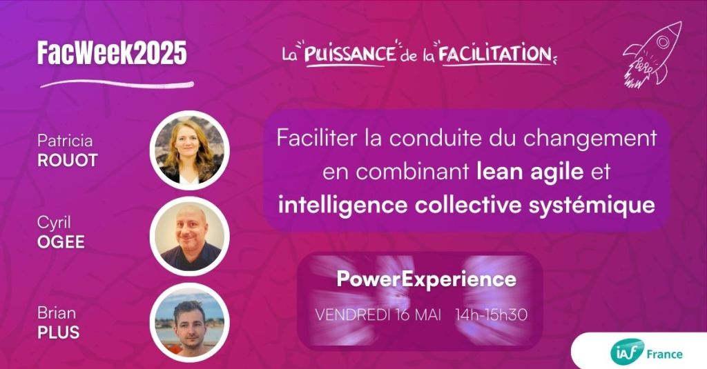 Retour d’expérience sur l’accompagnement d’une conduite du changement en combinant la facilitation Agile de la transformation organisationnelle vers SAFe et l’approche de la facilitation en intelligence collective systémique.