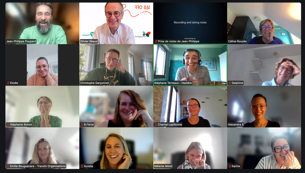 - un très bel échange avec de nombreux facilitateurs internes qui témoignent de l’impact et de ce qui se joue en termes d’engagement des collaborateurs et de culture d’entreprise. Une dizaine d’organisations majeures étaient représentées et se sont exprimées.