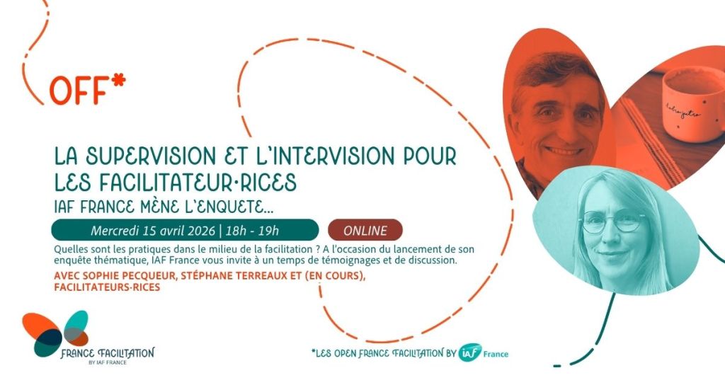 Mercredi 15 avril, de 18h à 19h, IAF France ouvre ce sujet avec un premier OFF* dédié aux pratiques de supervision et d’intervision dans le milieu de la facilitation.